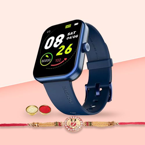 This Gift Hamper contains: A Kundan Rakhi by Rakhi Sutra (PRRK8143) Noise Colorfit Pulse 2 Max Smart Watch (Blue) Complimentary Roli Tika N Chawal Complimentary Message Card with Free Rakhi Make this Raksha Bandhan memorable with our exquisite Charismatic Noise Colorfit Smartwatch and Kundan Rakhi Set. This thoughtfully curated gift hamper features a beautiful Kundan Rakhi from Rakhi Sutra, crafted to celebrate the special sibling connection. The stylish Noise Colorfit Pulse 2 Max Smart Watch in blue not only adds a fashionable touch but also offers smart features for a healthier lifestyle. Weve also included Roli Tika and Chawal to keep the traditions alive, along with a complimentary message card to convey your heartfelt wishes. This gift set embodies the perfect blend of love, tradition, and ultimate style, making it the ideal present for your sibling.